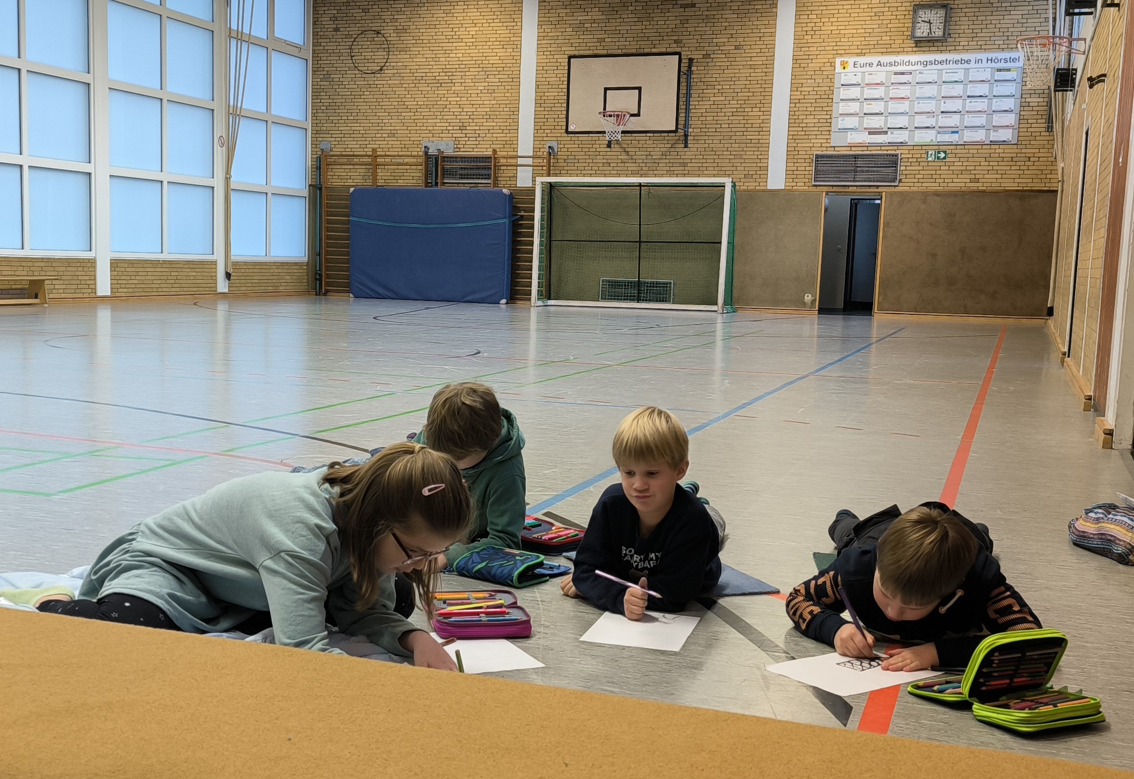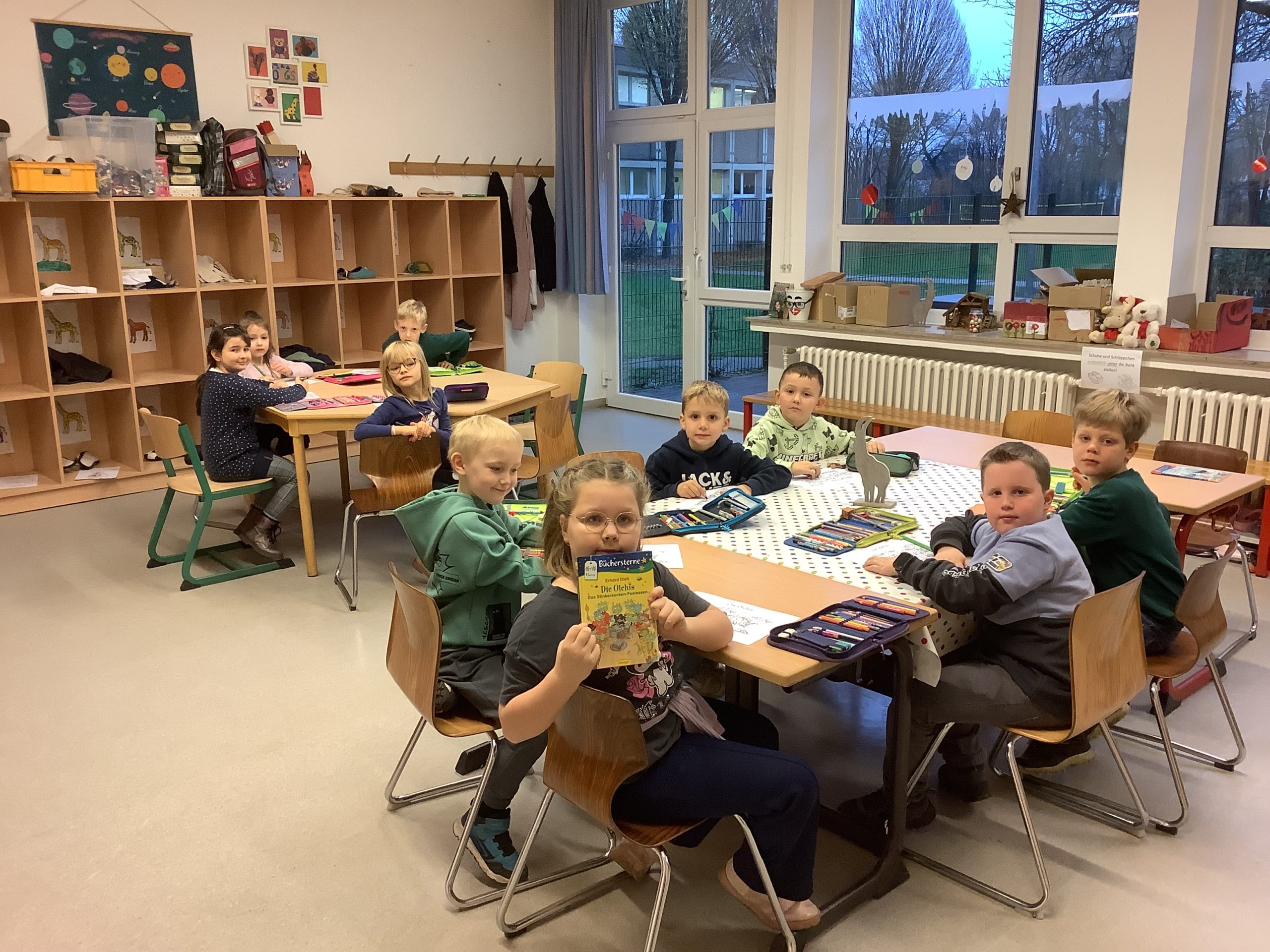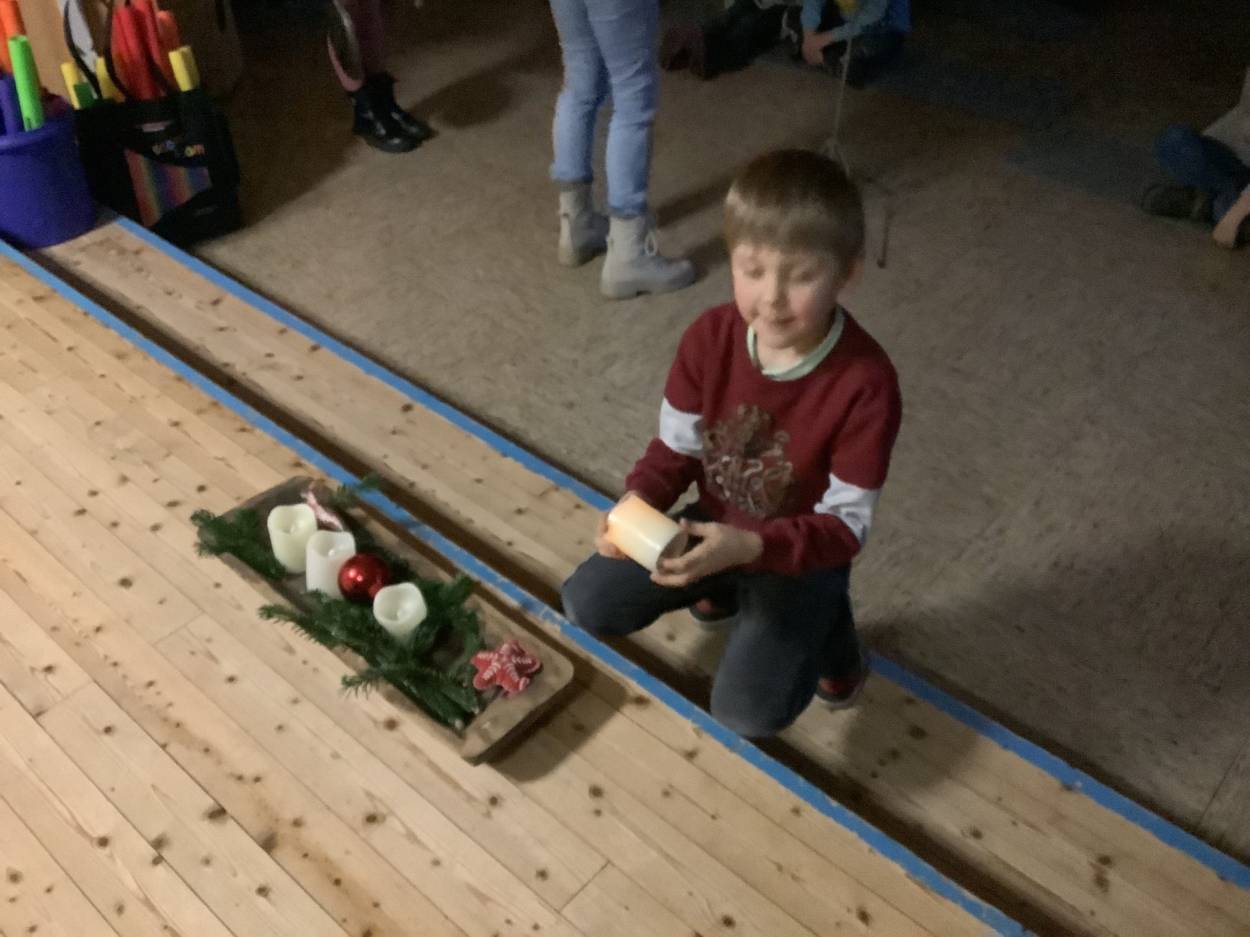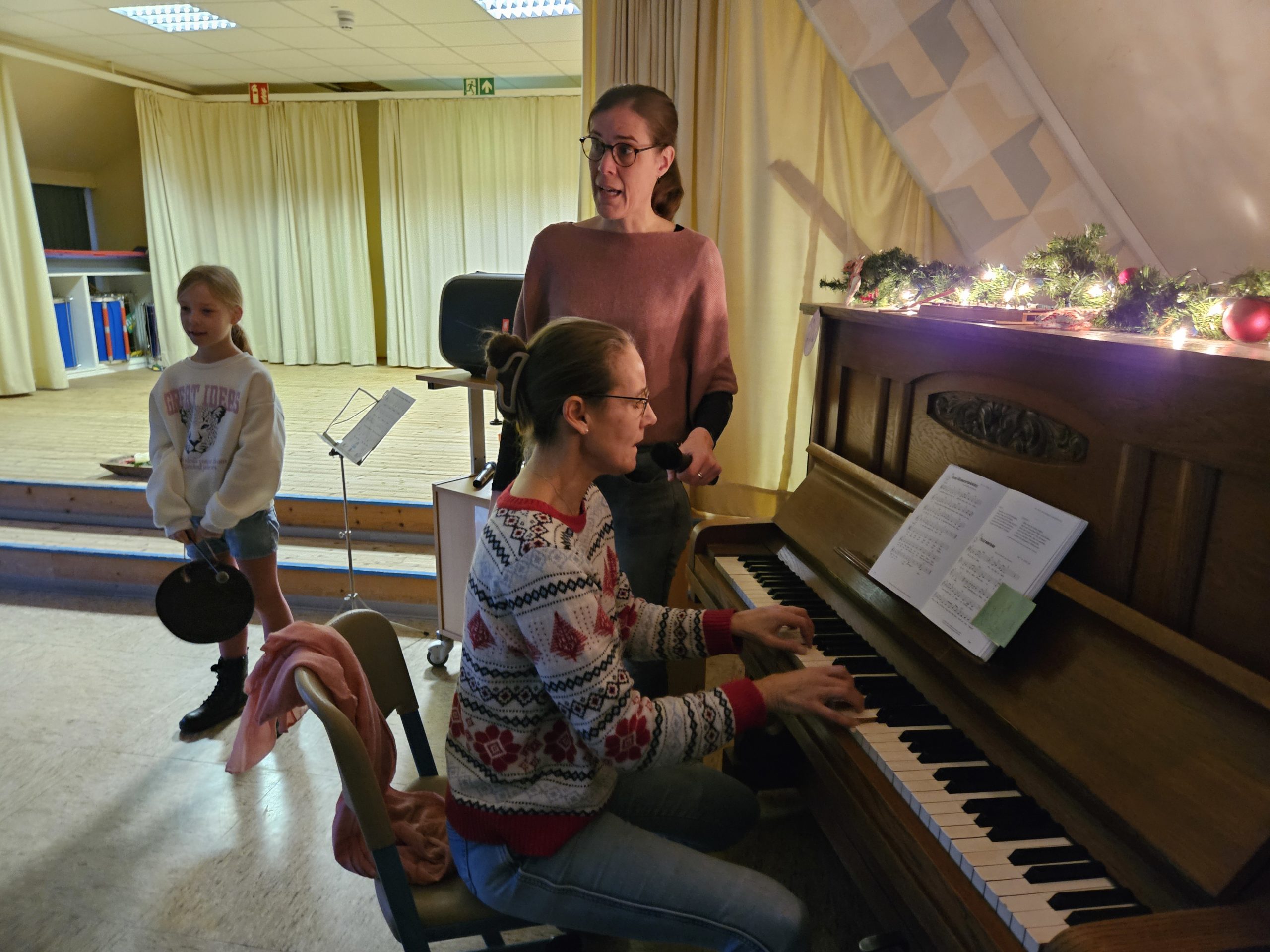 In der diesjährigen Adventszeit findet an unserer Schule wieder das wöchentliche Adventssingen statt. Dazu versammelten sich alle Kinder und ihre Lehrkräfte am Dienstag, den 02.12.25 zu Beginn der ersten Stunde in der Aula. Nachdem die erste Kerze am Adventskranz brannte, sangen alle gemeinsam die erste Strophe des Liedes „Das Licht einer Kerze“. Anschließend sang die Klasse 2b das Lied „Bruder Jakob“ zunächst im Kanon und anschließend spielten die Kinder es mit Boomwhackers. Zum Abschluss schmetterten alle gemeinsam „In der Weihnachtsbäckerei“.
