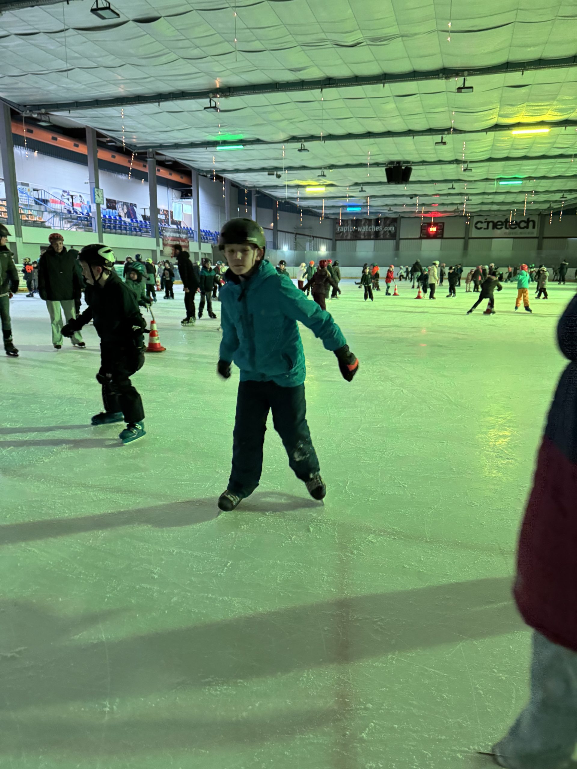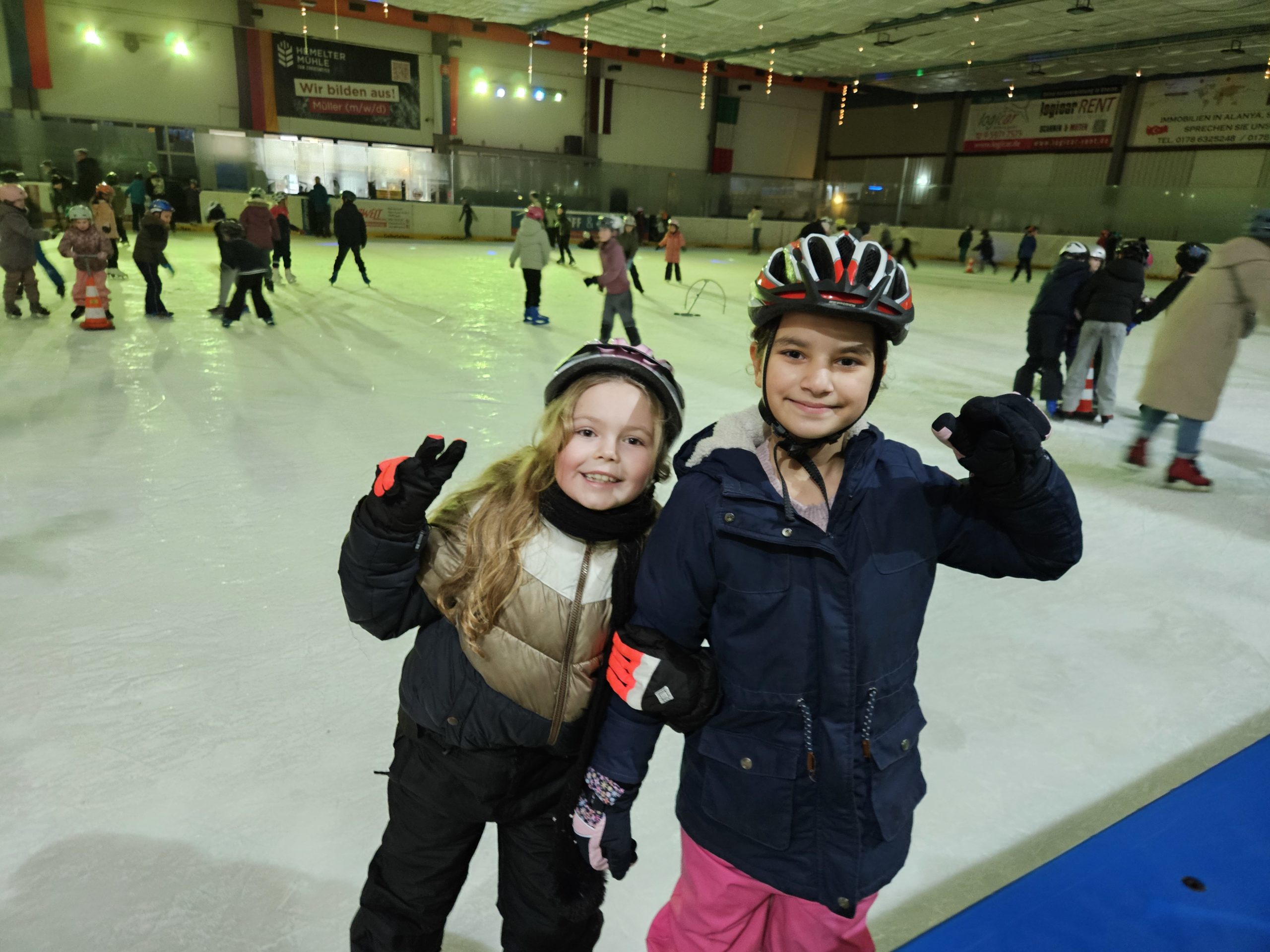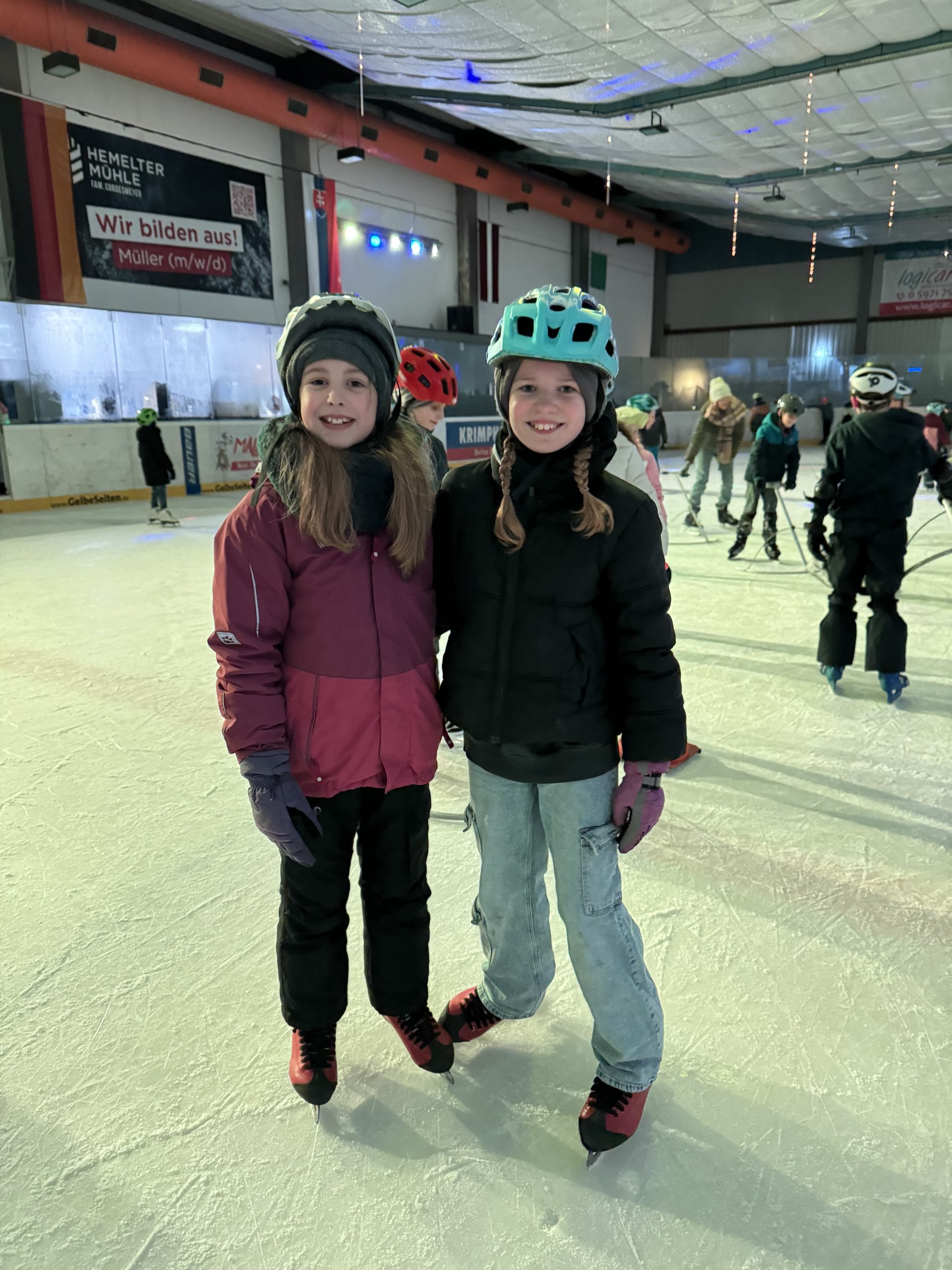 Am letzten Schultag des Jahres konnten die Kinder sich noch einmal über eine besondere Aktion freuen. Es ging wieder mit der gesamten Schule zur Eishalle nach Rheine. Dort hatten wir die gesamte Eisfläche für uns und die Kinder und Lehrkräfte konnten so manche Runde auf dem Eis drehen.