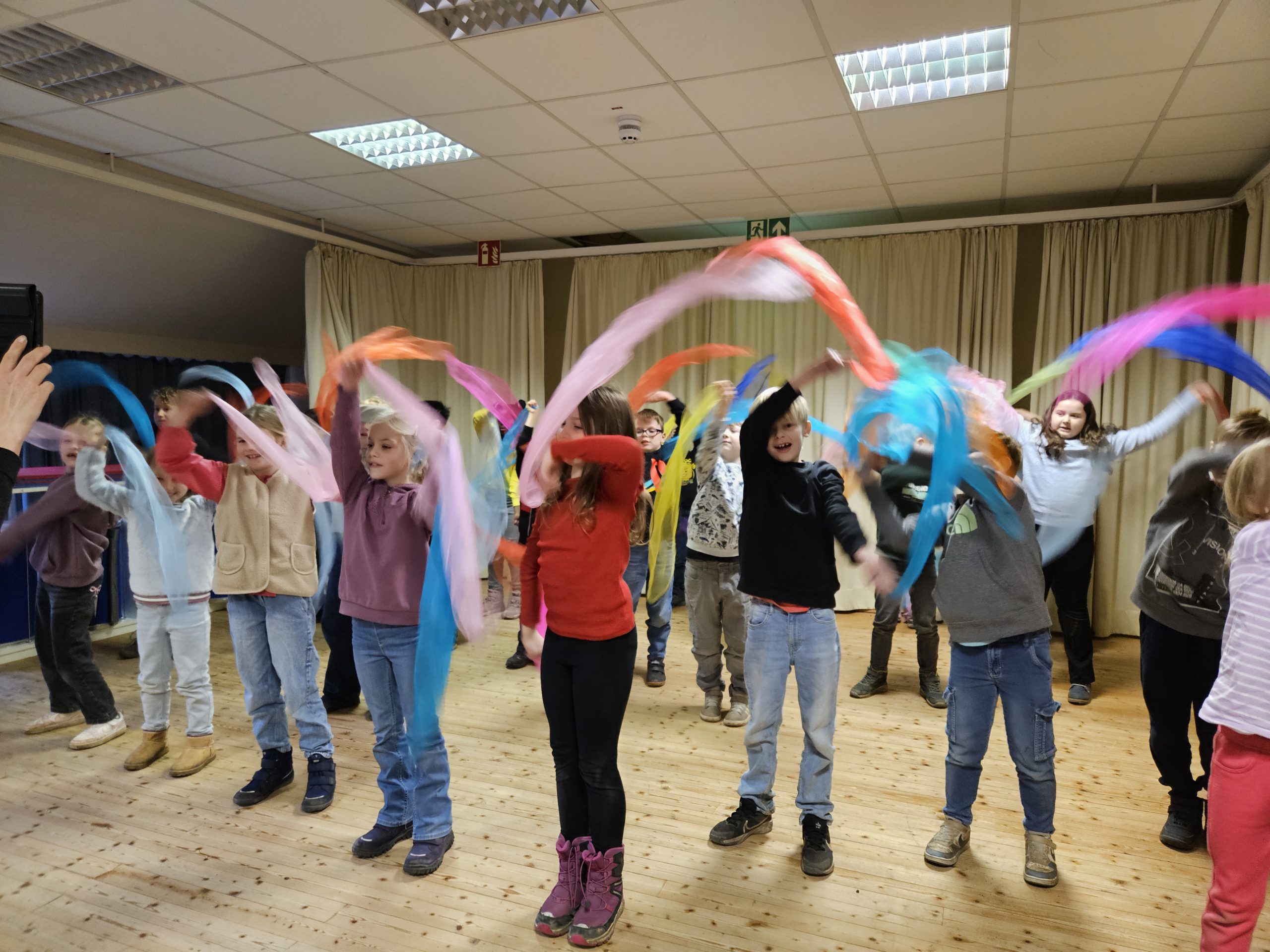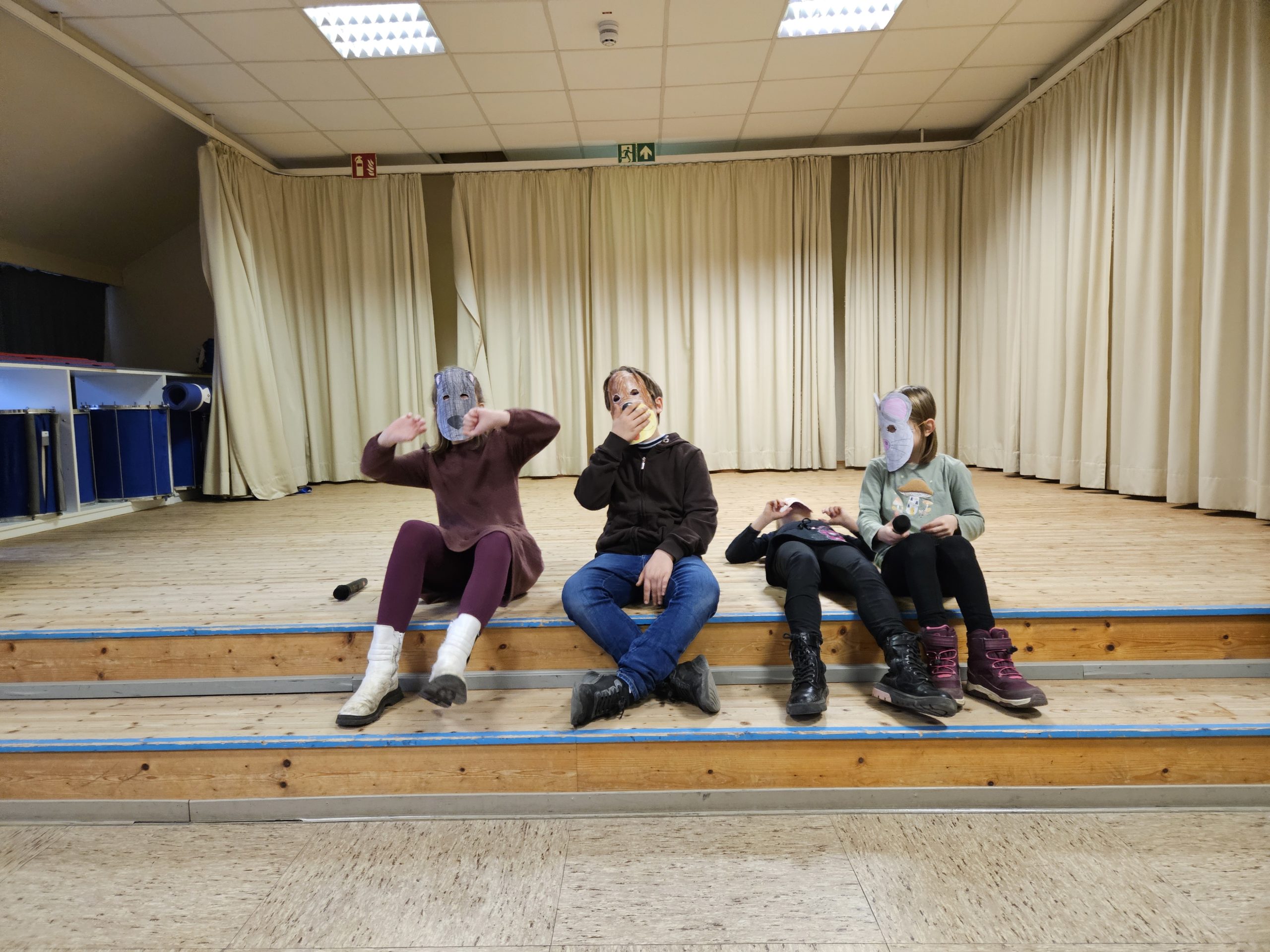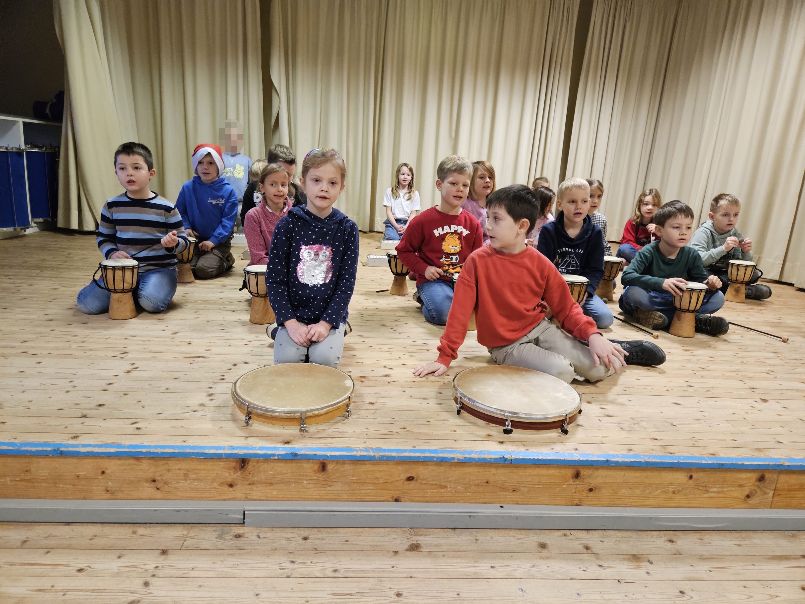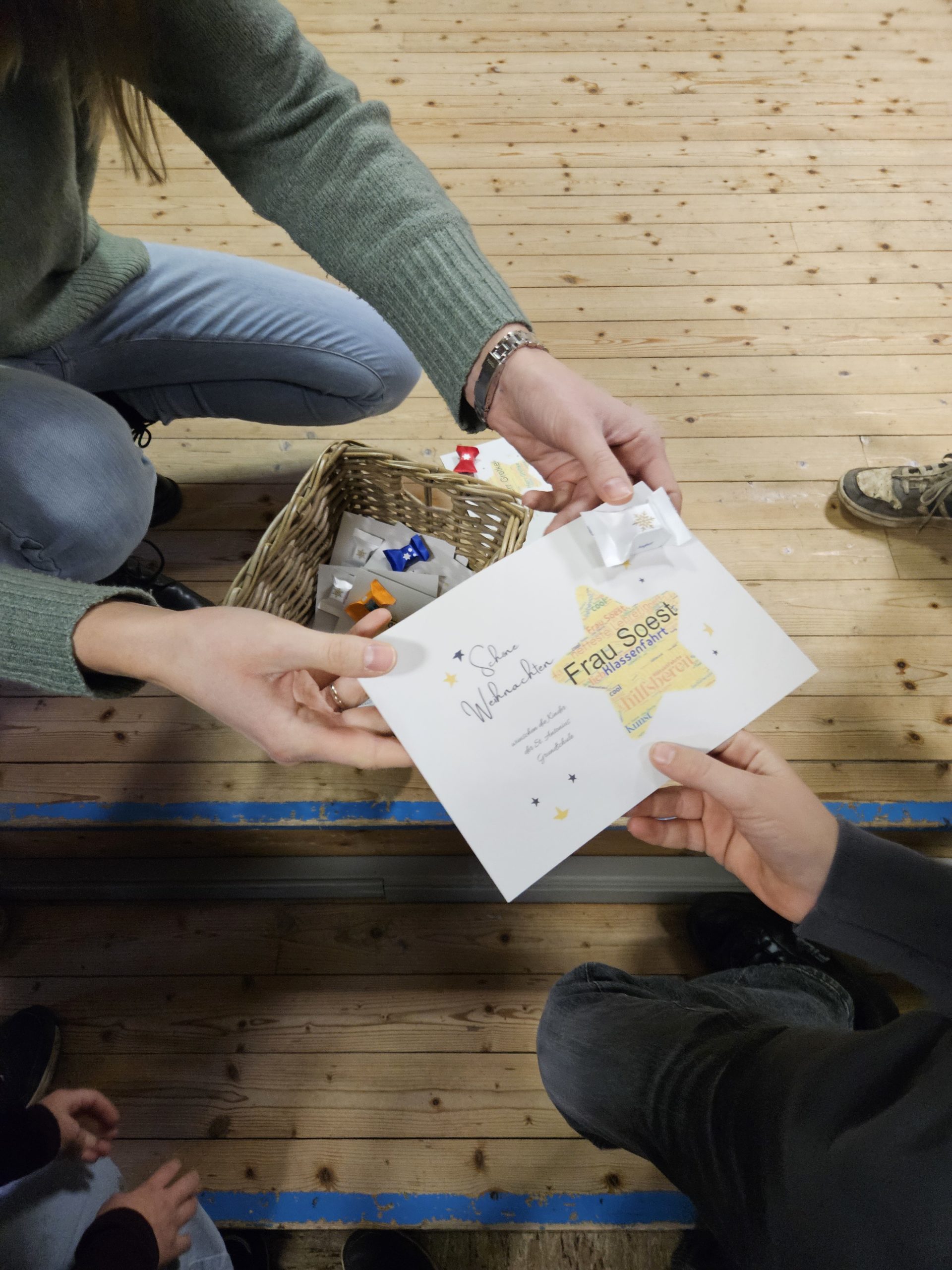 Die letzte Schulversammlung des Jahres fand am Donnerstag, den 18.12.25 in der Aula statt. Moderieren durften dieses Mal Leni und Liam aus der Klasse 3c. Den Beginn machte die Klasse 1a, die das Lied „Kleine Igel schlafen gern“ sangen und mit Instrumenten begleiteten. Danach spielten vier Kinder aus der Klasse 3c das Stück „Das Weihnachtswunder“ vor, bei dem vier Tiere auf ein Wunder an Weihnachten warteten. Anschließend stellte Frau Birke die neuen Pausenhelferinnen und Pausenhelfer vor, die nach den Weihnachtsferien ihren Dienst beginnen werden. Danach kamen alle Klassensprecherinnen und Klassensprecher nach vorne, die gemeinsam mit Frau Birke in der Kinderkonferenz eine Überraschung für die Lehrkräfte vorbereitet hatten, die sie dann überreichten. Zum Abschluss zeigte die Klasse 2a einen Tüchertanz zu einem Weihnachtslied auf der Bühne.