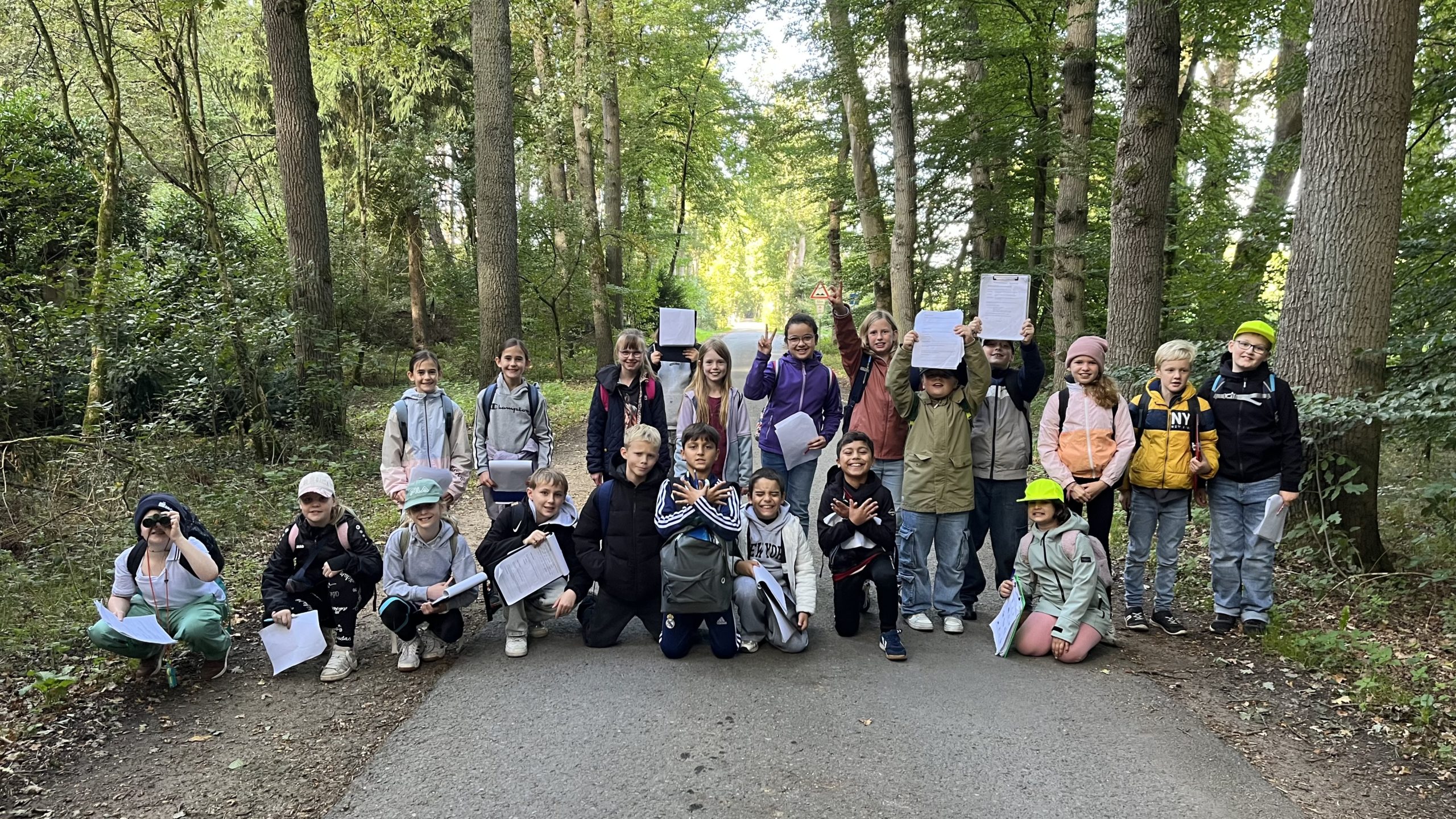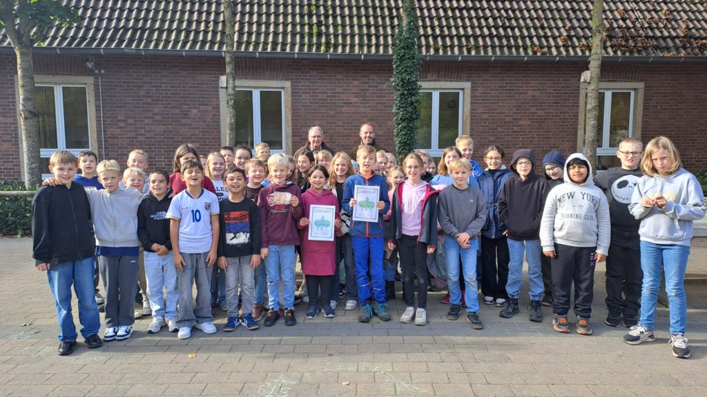 Am Dienstag, den 23.09.25 haben unsere 4. Klassen wieder an den Waldjugendspielen im Surenburger Wald in Riesenbeck teilgenommen. Am Freitag kamen die Organisatoren Herr Pieper und Herr Herder für die Siegerehrung an die Schule. Jede Klasse erhielt eine Urkunde und die Klassensprecher durften einen Umschlag mit einem Geldpräsent ziehen. Die Klasse 4a konnte sich hierbei über 50€ und die 4b über 30€ für die Klassenkasse freuen.
